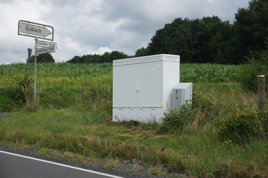 Nachdem die Deutschen Telekom Technik GmbH zugestimmt hatte, wurde der Telekom-Kasten am unteren Dorfeingang bereits Anfang Juli grundiert und am 19. Juli wurde die Vorzeichnung aufgetragen. Am Samstag, dem 23. Juli, haben ihn die Eisbacher Kinder großflächig mit unserem Eisbach-Logo bemalt. Die Handschrift der Kinder darf man diesem Bild ruhig ansehen...