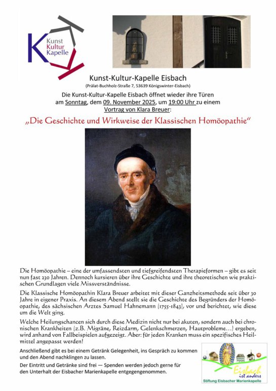 Sonntag, 09. November 2025, 19:00 Uhr: "Die Geschichte und Wirkweise der Klassischen Homöopathie"